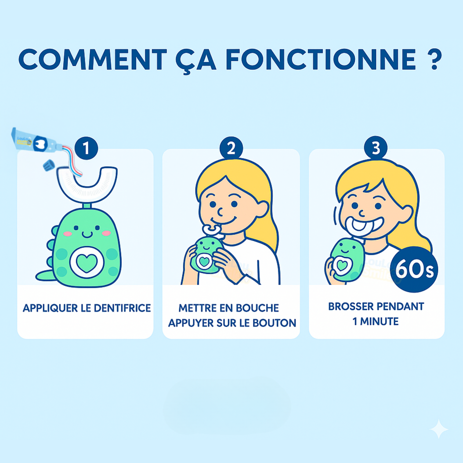 Fini les cris et les négociations: le brossage devient un moment simple et agréable.