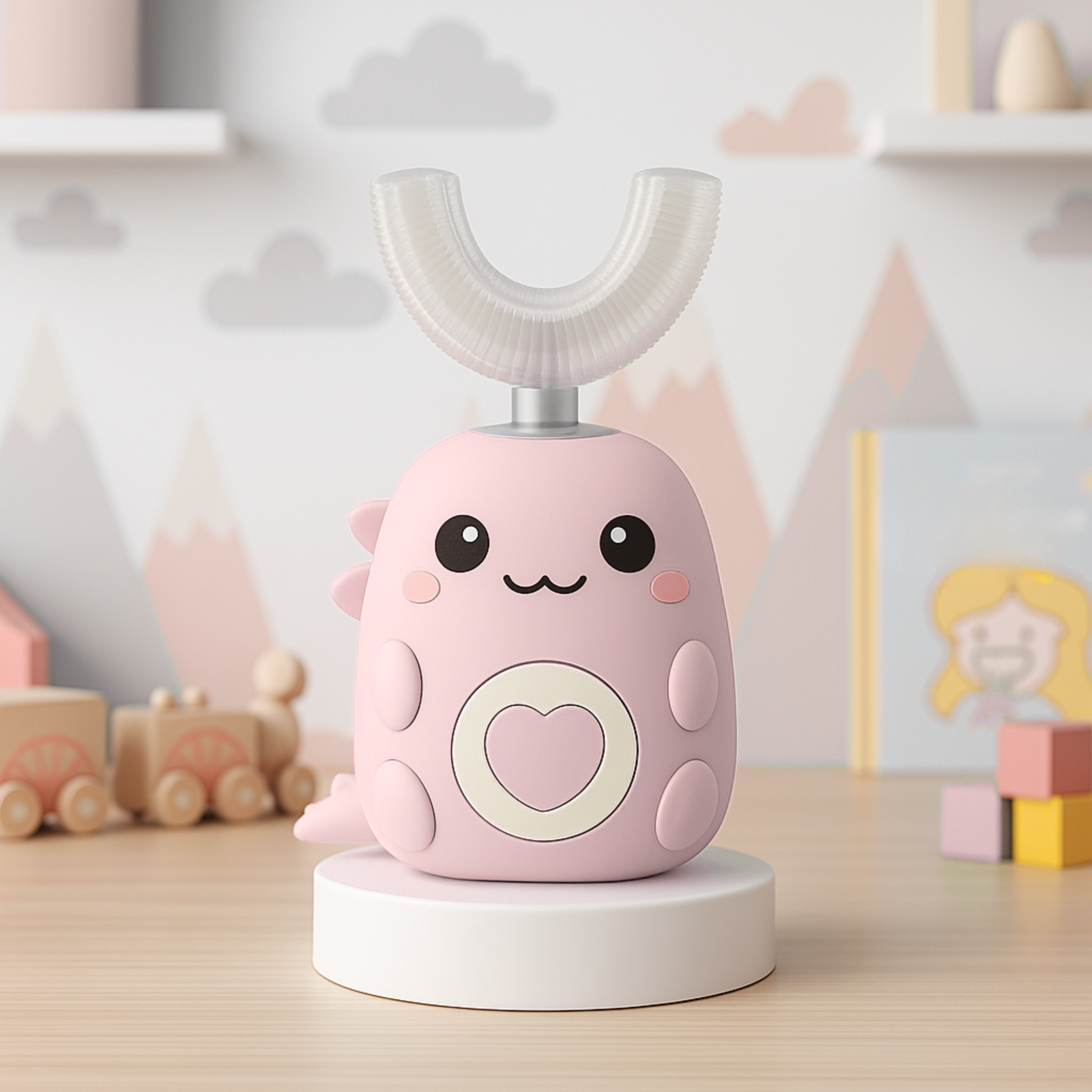 Fini les disputes ! Grâce à sa forme amusante et enveloppante, votre enfant se brosse les dents avec plaisir — sans effort.